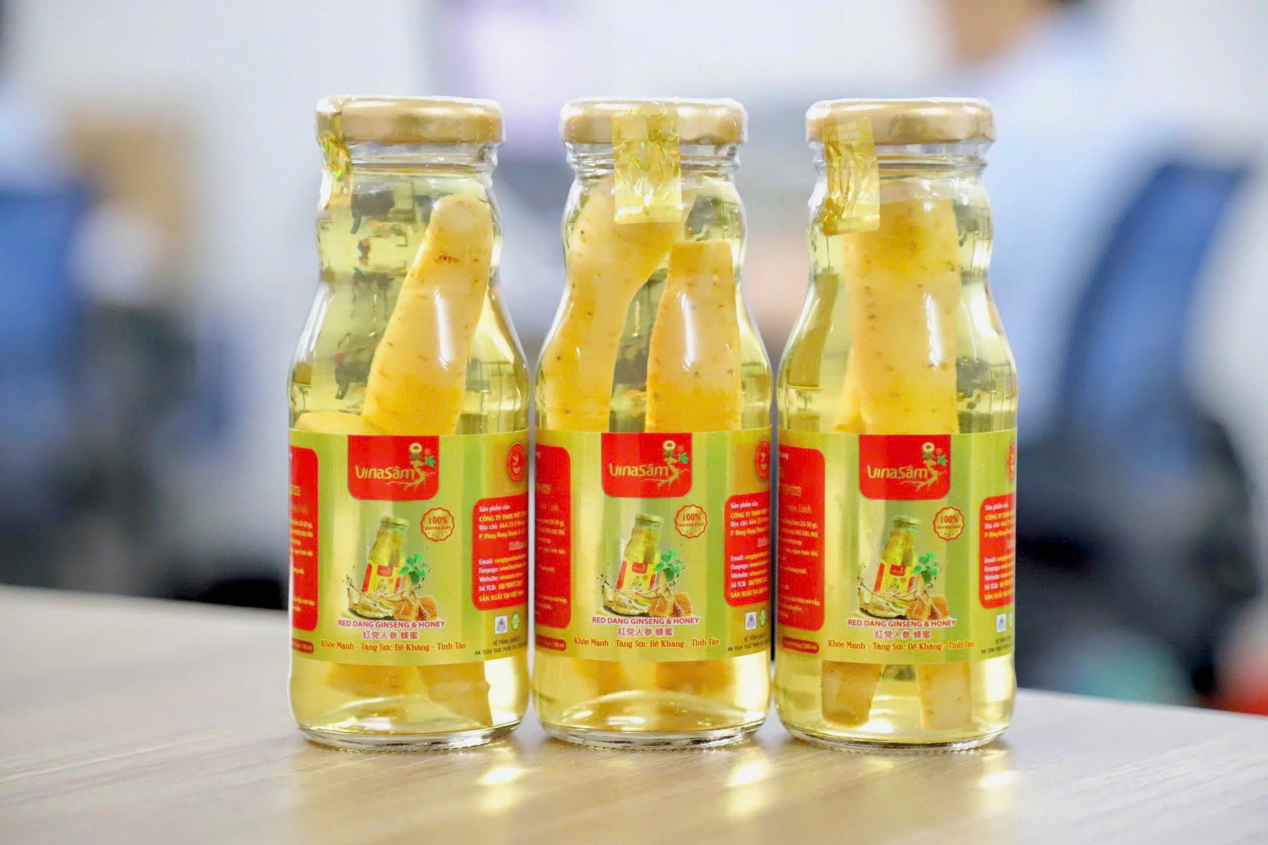 Thông tin mô tả: Hồng Đẳng Sâm ngâm mật ong, là sự kết hợp giữa những củ Hồng Đẳng Sâm được tuyển chọn kỹ càng tại dãy Ngọc Linh – huyện Đắk Glei – Tỉnh Kon Tum. Thành phẩm được tạo ra là sự kết hợp giữa mùi hương dịu nhẹ, vị ngọt thanh khiết, mang đến những trải nghiệm dễ chịu cùng nguồn năng lượng lành tính hoàn toàn đến từ thiên nhiên.